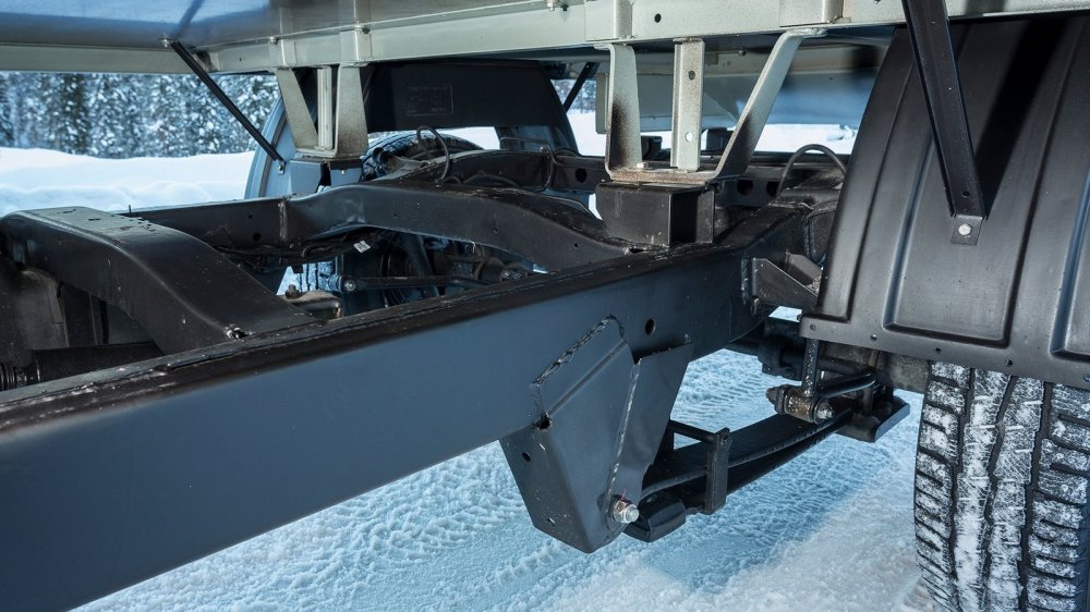 Рама лестничного типа сделана из двух профилей разной высоты, которые образуют закрытое сечение. Преимущество очевидно — такая рама очень стойка к нагрузкам как со стороны дороги, так и со стороны груза.