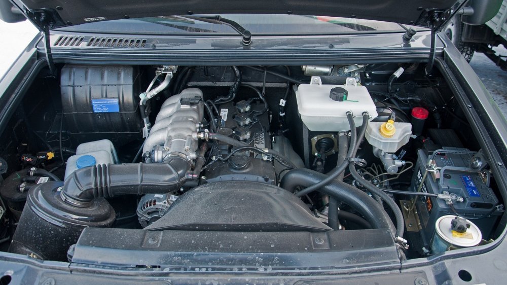 На раме стоит модифицированный мотор ZMZ PRO. Это модель с индексом ЗМЗ-409051.10. И опять же: здесь очень много нового. Но сначала — цифры.