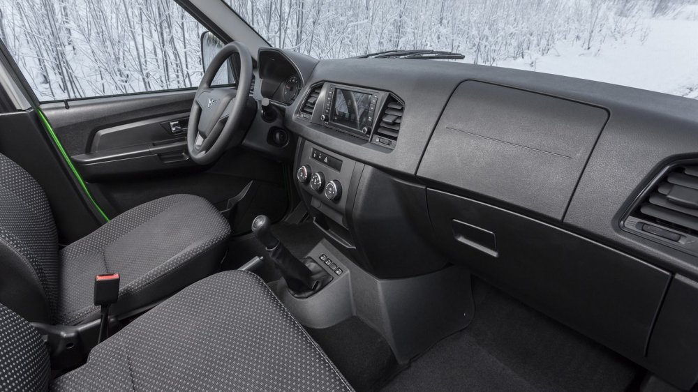 Вообще к морозам УАЗ Профи подготовлен хорошо. Понятно, что в городе замёрзнуть тяжело, но мы ехали по трассе до 130 км/ч (правда, на второй день, на другой машине), а на таких скоростях при забортной температуре сильно за -20 может быть всякое. Но мы не мёрзли, причём печка у нас работала далеко не на полную катушку. Правда, и у неё есть особенности. Например, придётся долго подбирать оптимальное распределение потока воздуха. Если поставить классическое “в ноги — в лобовое”, сразу начинают замерзать боковые стёкла. И тогда уже никакие обогревы зеркал не помогают. В итоге мы направили воздух на боковые стёкла и в ноги, а лобовое стекло нам размораживал электрообогрев, который вместе с подогревом сидений предлагается в комплектации «Комфорт».