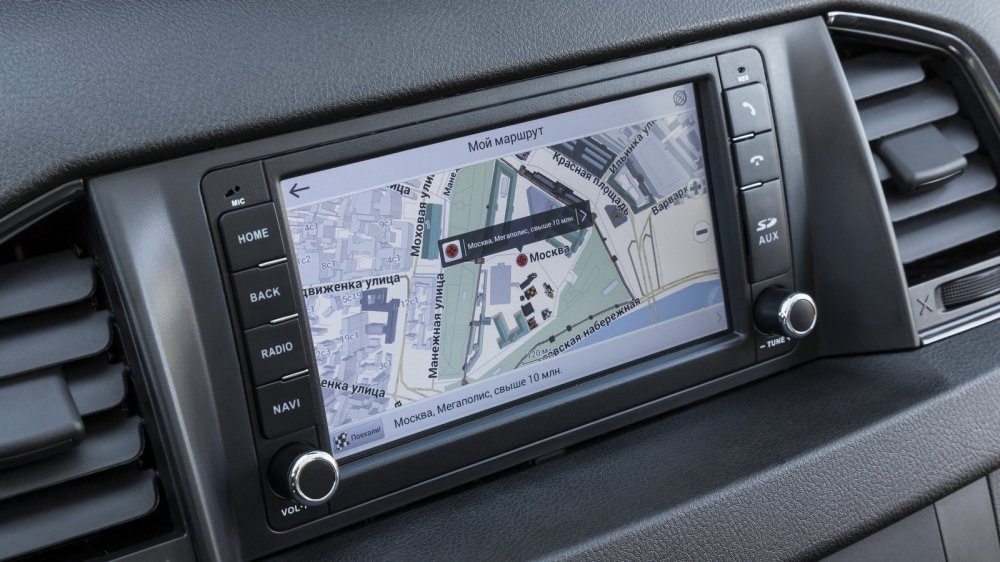 Тем временем в кабине начинает бормотать рация, а рядом со мной садится коллега из совсем другого издания. Мы проверяем проложенный на навигаторе маршрут. Да-да, тут есть навигация! Первая точка на карте — Распадский угольный разрез.