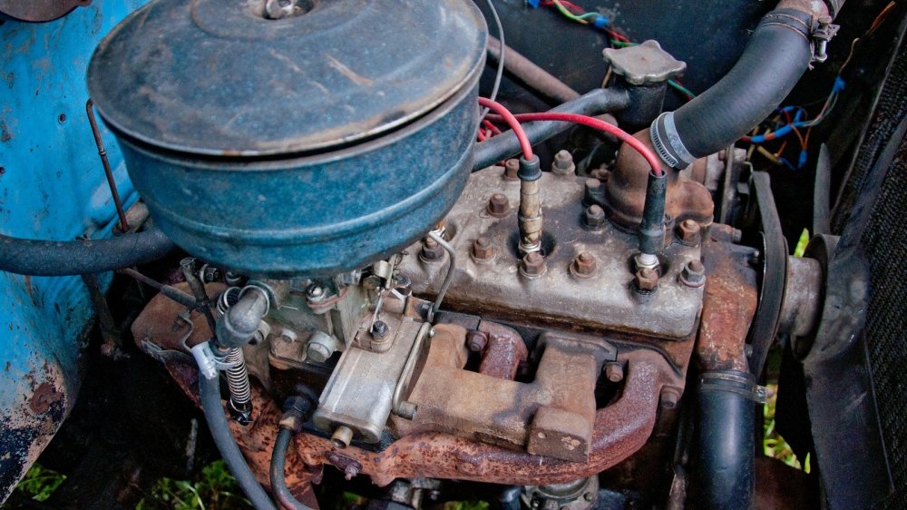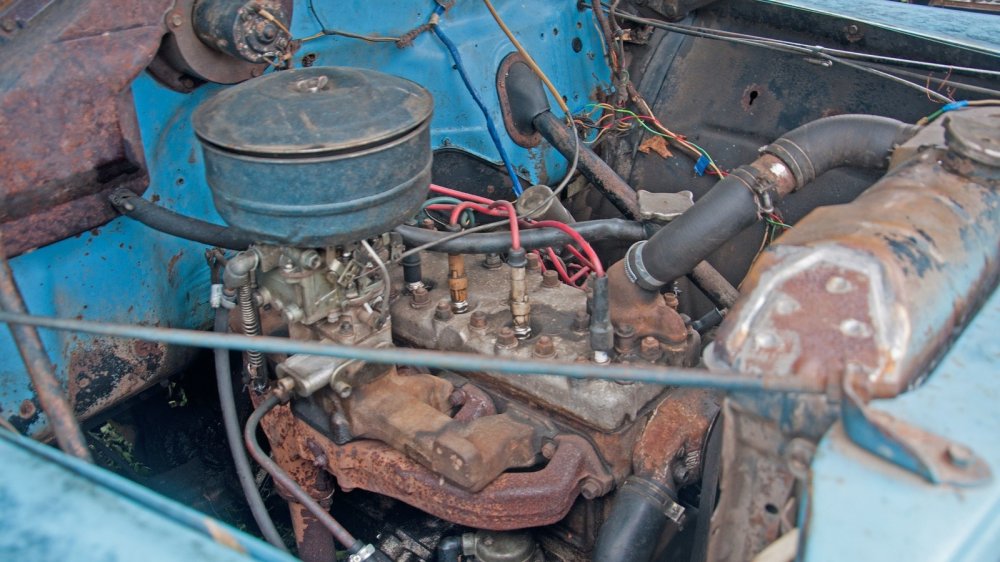 Для почти тридцатилетнего отечественного автомобиля “газон” сохранился неплохо. Конечно, лазить по нему с толщиномером так же глупо, как бросать пить 31 декабря, но многого мы от него и не ждали. Владелец воду в радиатор уже залил, так что нам остаётся только проверить уровень масла (он оказывается в порядке), поставить аккумулятор, подкачать вручную бензин и запустить мотор. Не сразу, но двигатель заработал, причём очень даже недурно: ровно, без стуков и перебоев. Но ехать ещё рано.