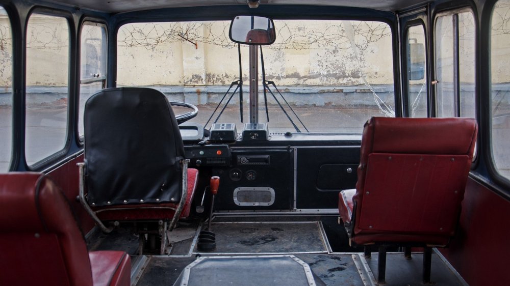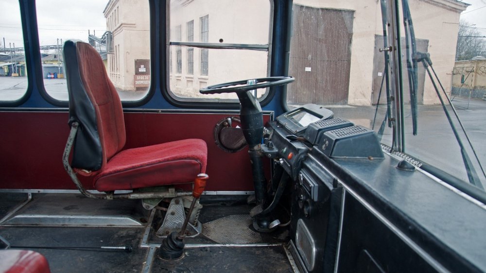У автобуса нет регулировки наклона спинки водительского сиденья. Как только я в него сел, у меня появилось впечатление, что рост Качасума Алхазова вряд ли был выше одного метра семидесяти сантиметров. Но в итоге устроиться на месте водителя смог и я.