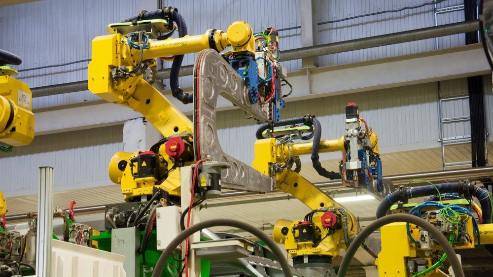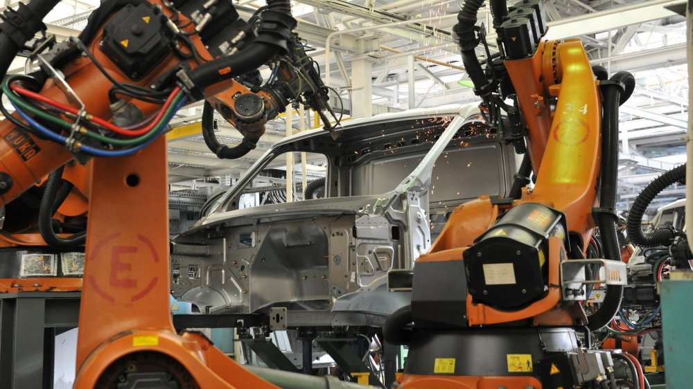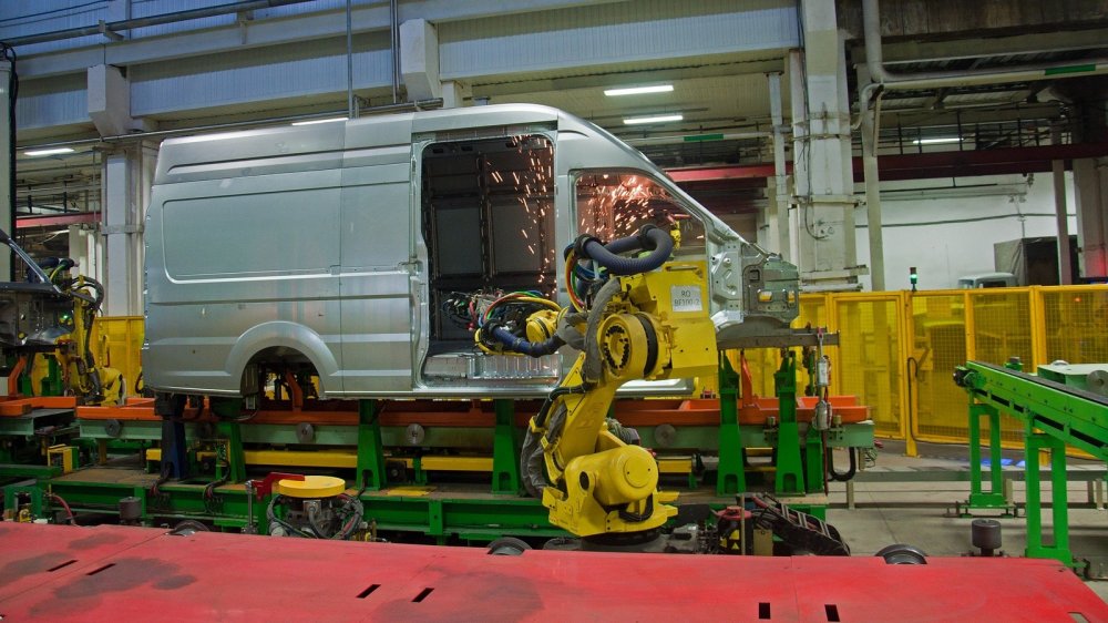 Заглянем в цех сварки цельнометаллических кузовов. Прошло то время, когда их варили вручную. Теперь тут буйствуют роботы. Тут настолько всё автоматизировано, что ещё немного, и эти железные чудовища захватят власть, сварят себе генерала и пойдут войной на человечество. И это действительно страшно: только на линии сварки фургонов «ГАЗель NEXT» работают 98 японских роботов Fanuc, причём самый сильный из них поднимает 700 кг. И ещё 100 роботов немецкого производства Kuka впахивают на линии сварки кабин в другом цехе. Ладно, шутка, никуда они не пойдут: у них ног нет. Придётся им тут так и стоять и варить Газели Некст. Управляющая система линии непрерывно контролирует все основные параметры сварки: силу тока, а также силу и время сжатия клещей. А если надо — даже моментально вносит коррективы. Кстати, теперь тут используют и клей, что позволяет меньше нарушать структуру железа при сварке, что должно способствовать долголетию кузовов. А после окончания сварки только на кузове фургона ГАЗель NEXT на координатно-измерительной машине проверяется 6 000 сварочных точек, причём отклонения в каждой не могут быть больше 0,2 мм.