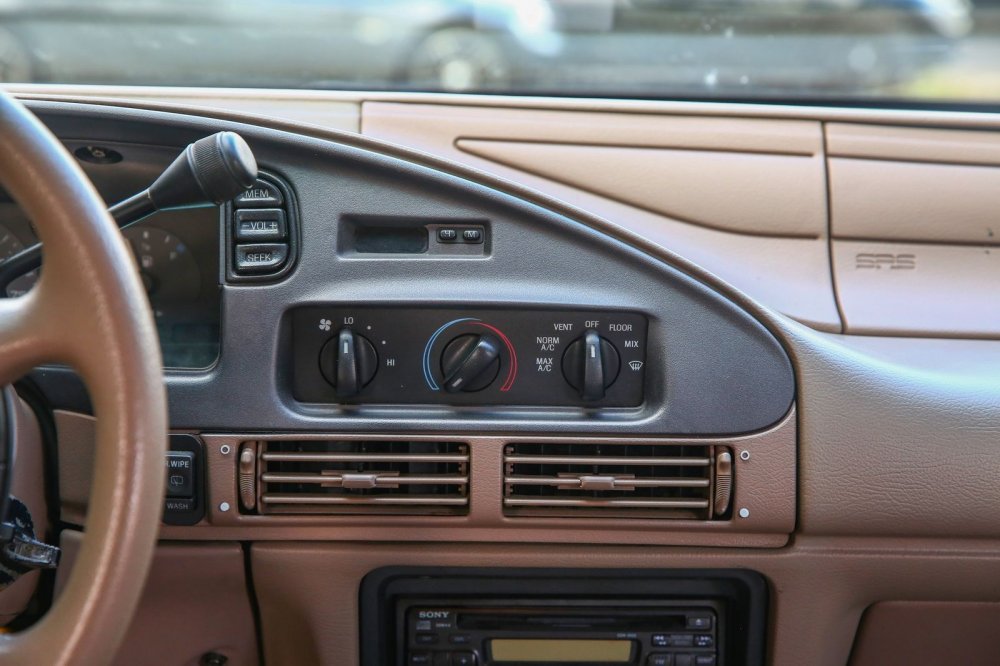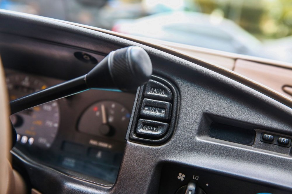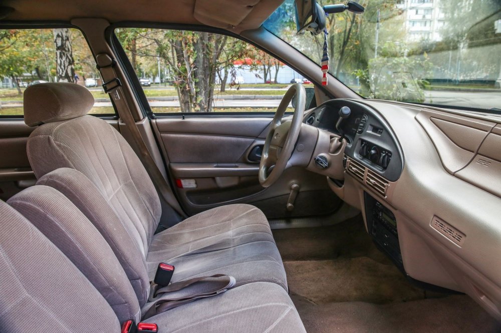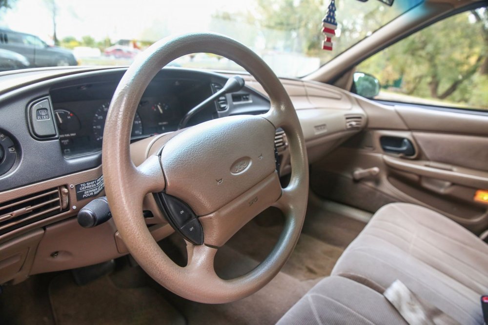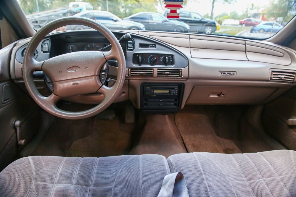 Хорошо сохранившийся салон просторен, а ощущается даже еще просторнее, чем он есть, за счет светлого винила отделки и ткани кресел. В машине имеется все необходимое, и хватает разных интересных и полезных мелочей. В наличие кондиционер, гидроусилитель, две передние подушки безопасности, круиз-контроль, регулировка руля по углу наклона, ABS, аудиосистема (радио + кассета). Рукоятки управления климатом даже спустя четверть века переключаются четко, фантастически мягко и тактильно «вкусно» – дело в том, что они не приводят в движение тяги и шарниры, а включают клапана: привод заслонок вакуумный. При этом конкретно наш экземпляр Тауруса скромен по комплектации вообще и для американца, в частности: даже стеклоподъемники по кругу – ручные!