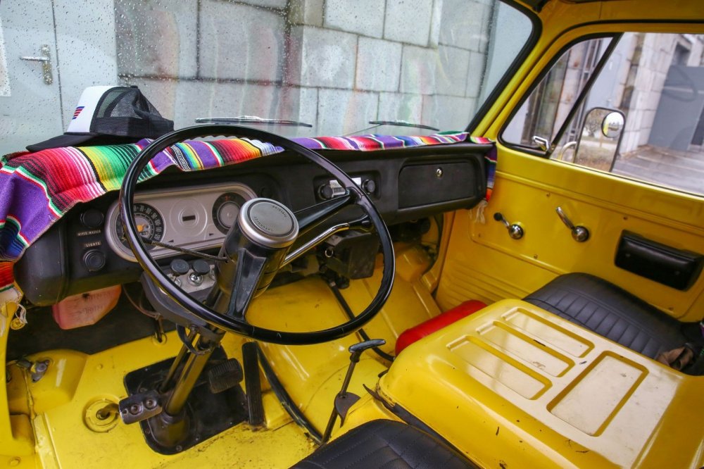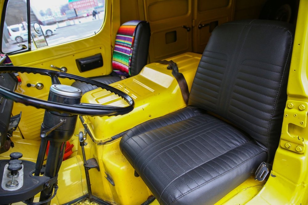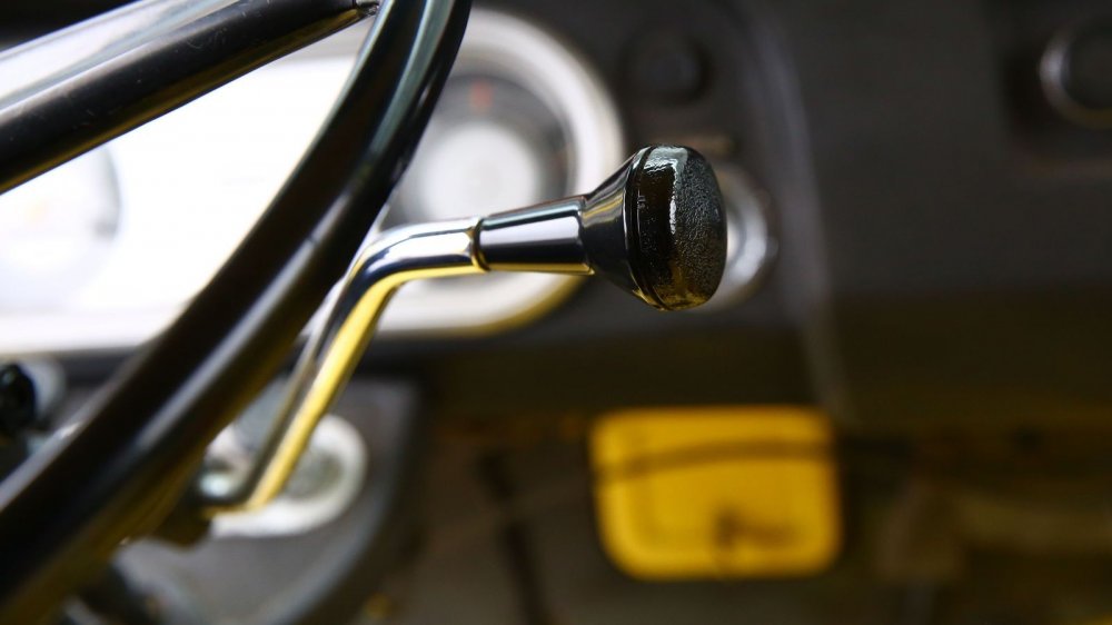 Коробка передач – обычная механическая с забавным сленговым прозвищем «three-on-the-tree», что в буквальном переводе означает «три на дереве»: рычаг трёхступенчатой коробки располагается на рулевой колонке. Давайте уже залезем в кабину и подёргаем этот рычаг.