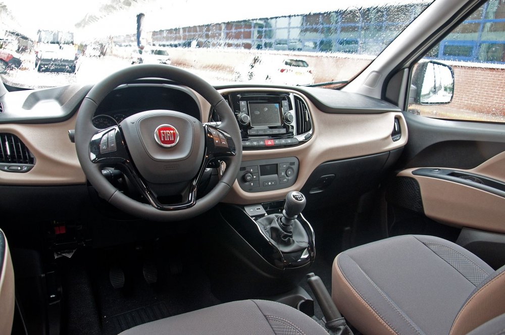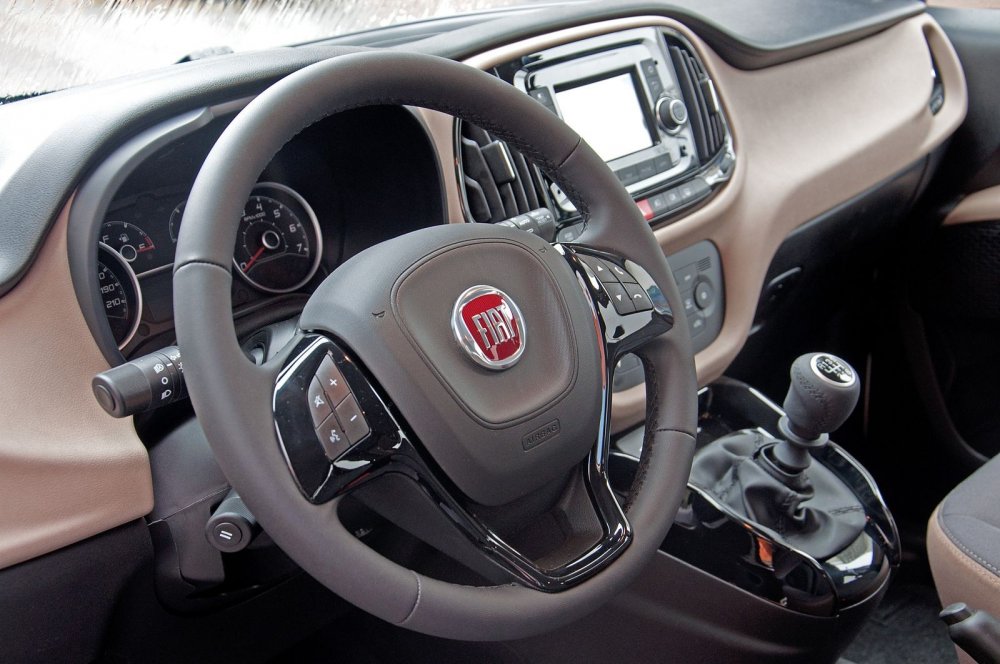 В нашем случае интерьер выполнен в двух цветах. И это здорово: чёрные и серые салоны уже нельзя спасти всякими «красными прострочками» и алюминиевыми вставками. Тем более, что в коммерческих машинах нет и последнего. На этом фоне кажется, что в Doblo есть прямо-таки серьёзная заявочка на полёт дизайнерской мысли. Полёт разбился о дешёвые даже на вид материалы, но от фургона большего ждать не приходится. Ну а главное – тут не хочется выть на луну от древнерусской тоски, как это часто бывает в бюджетных автомобилях. К тому же у Doblo есть ещё одно преимущество, которое я не могу не отметить: это прямо-таки завидный простор на месте водителя. Настолько завидный, что в Doblo за рулём можно размахивать руками, как Жириновский с трибуны Госдумы. Видимо, эмоциональные итальянцы хорошо об этом подумали.