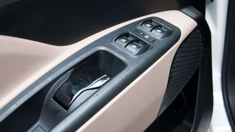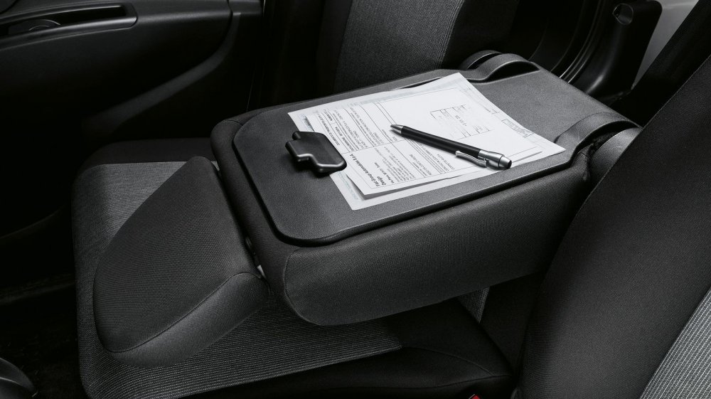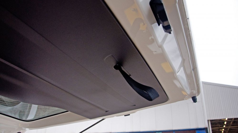 Ещё одна приятная неожиданность – большое количество мест, куда можно распихать содержимое карманов, и не только их. В перчаточный ящик влезет не просто файл с документами, а вся бухгалтерия Газпрома. Мелочёвку можно положить в два раздельных углубления сверху панели и в карманы дверей. Кстати, задняя полка выдерживает вес в 70 кг! И туда можно уложить три чемодана. Задняя дверь в пассажирской версии открывается вверх. Нам в Бурсе, где проходил тест-драйв, очень не повезло с погодой (шёл сильный дождь), поэтому я очень оценил наличие петли на внутренней части задней двери, за которую можно её закрыть, не испачкав руки.