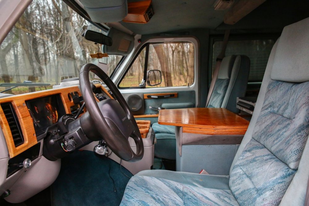 Вообще, Chevy Van этого поколения начали выпускать в 1971 году, закончили – в 1995. Можно сказать, что наша машина – одна из поздних вариантов. И поэтому, даже несмотря на некоторую архаичность конструкции, комплектация у нее для своего возраста не самая бедная. Есть регулировка рулевой колонки, ABS, стеклоподъёмники, кондиционер… А вот подушку безопасности водителей в базовой комплектации стали ставить только в 1994 году.