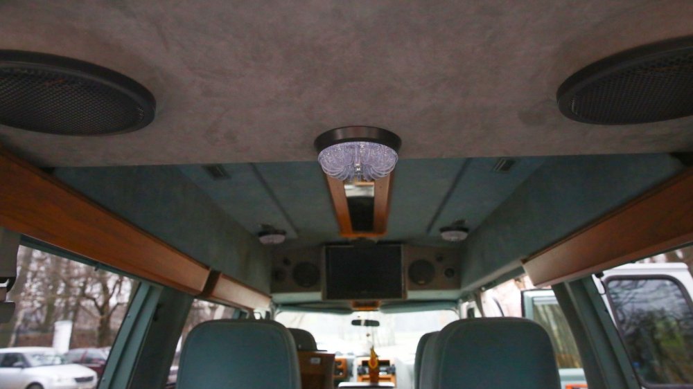 У Chevy Van третьего поколения, к которому относится наша машина, была интересная комплектация, которая называлась Conversion. По сути – абсолютно пустой фургон. Делали его специально для тех, кому вечно чего-то не хватало. Для тех, кто хотел построить фургон для себя. Но если в России тюнинг фургона – это лебёдка на «буханке», и на ней же – колёса ненормального размера, то в Америке подход к «улучшайзингу» совсем другой. Были фирмы (например, Mark III, Tiara, Coach, Starcraft и некоторые другие), которые брали фургон-conversion и делали из них то, что хотел заказчик. В нашем вэне на дереве есть эмблема Mark III, но вряд ли она приехала с этим деревом из США: всё, что видно внутри машины, сделано предыдущими владельцами в России. В общем-то, сделано то, для чего и выпускали conversion. Вряд ли это можно назвать «колхозом», хотя старое цыганское проклятье в виде странной подсветки салона с изменяемыми цветами тут кажется немного не к месту. Ну а 22 динамика аудиосистемы, два сабвуфера, телевизор, караоке, преобразователь на 220 вольт, компьютерный стол, принтер, сканер и бар… Будем считать это небольшим капризом того, кто это всё сюда воткнул. От природы вместительный салон получил шарм дома-офиса с налётом легкомысленного флирта и незначительного разврата. Для жизни тут есть всё. Пусть даже это всё и не американское. Пожалуй, я не стану описывать роскошь пассажирского салона, а перейду сразу к технике, а оттуда – к месту водителя.