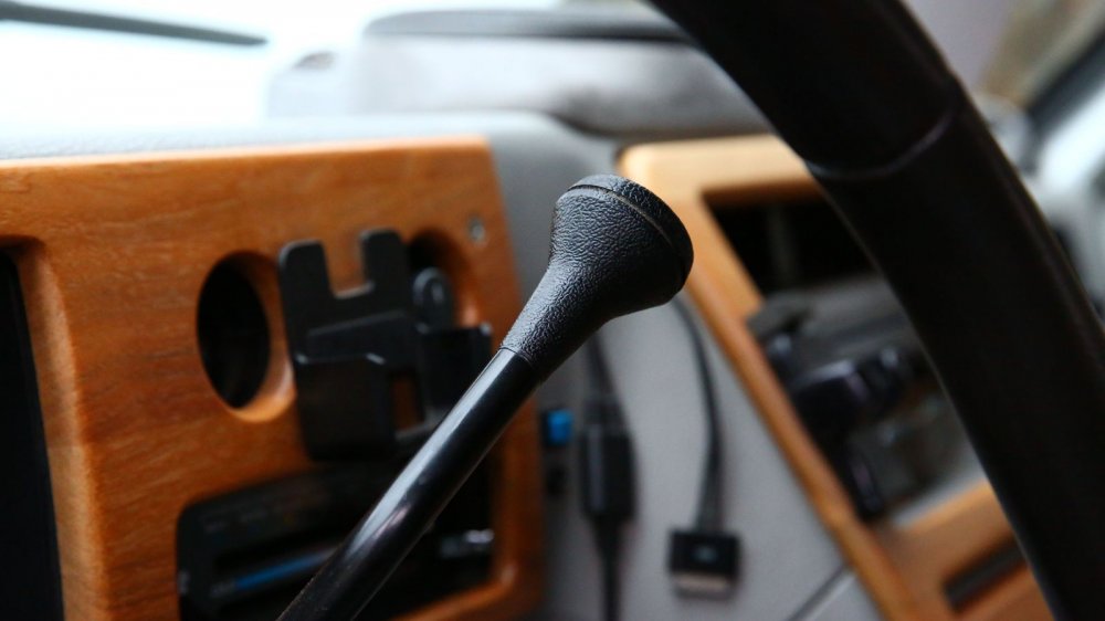 Приборов не слишком много. И от них тоже веет «Парком Юрского периода», «Днём сурка» и ещё не старым Сталлоне: они стоят в деревянной раме и не режут глаз, как современные дерзкие шкалы или экраны. К тому же один из приборов интересно скомпонован: в одном круге три стрелки показывают зарядку аккумулятора, температуру охлаждающей жидкости и масла. Ну и особый восторг вызывает аналоговый указатель положения селектора АКП. Сам селектор на рулевой колонке вызывает не восторг, а уважение. Я похожий рычаг последний раз видел в ЗиЛ-131, а тут – на автомате...
