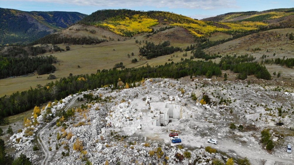 В принципе, дорог в Прибайкалье не так уж много, так что назад мы возвращались практически тем же путем, разве что вместо петли по горам Ольхона мы сделали крюк и заехали в поселок Бугульдейка. Здесь расположилась еще одна местная достопримечательность – заброшенный мраморный карьер. Открыт он был в 1968 году специалистами «Иркутскгеологии», и разведка, продолжавшаяся до 1973 года, показала, что протяженность залежей ценного камня составляет около 10 км. Промышленная разработка статуарного (то есть, пригодного для скульптурных работ) мрамора продолжалась здесь до 1994 года, когда горные инженеры несколько ошиблись с расчетами во время взрывных работ. Взрыв оказался слишком сильным, и рудное тело покрылось микротрещинами. В общем, испортили всю красоту. В результате месторождение законсервировали, благо не так уж далеко, в районе Слюдянки, имеется еще два мощных месторождения мраморов, «Перевал» и «Комарское». Ну а карьер в Бугульдейке стал объектом внимания туристов…