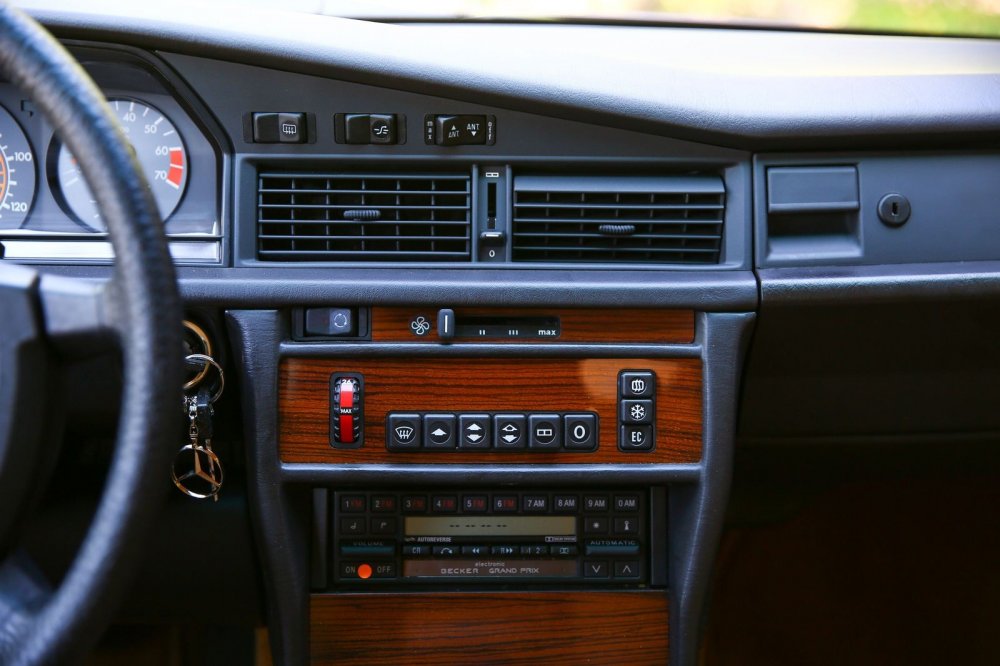 С сиденья водителя открывается вид на безукоризненную штутгартскую классику дизайна оформления органов управления и приборной панели, многие элементы которой без существенных изменений десятилетиями кочевали с модели на модель, в том числе и долгие годы после снятия 190-го с производства.