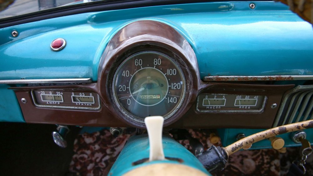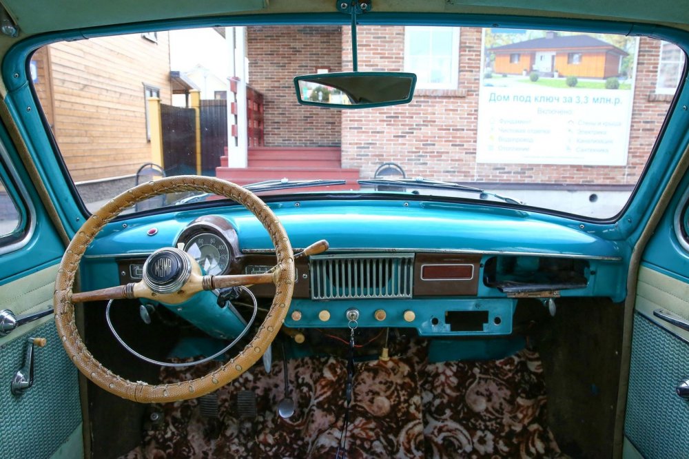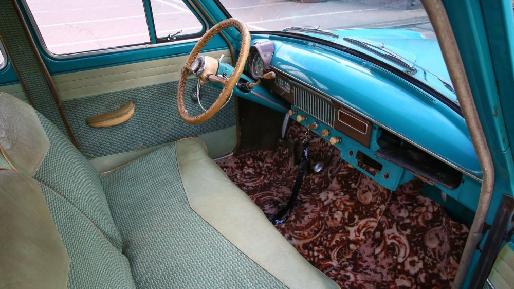 Салон автомобиля (за исключением диссонансного старого коврика на полу, самостоятельно постеленного предыдущими владельцами, как было принято в советское время) роскошно перекликается с окраской кузова и визуально несколько увеличивает скромное внутреннее пространство! В современном автопроме такую гармонию можно встретить разве что в премиум-классе, для которого доступен выбор гаммы цветов и разновидностей отделочных материалов. Всем же остальным приходится довольствоваться мрачной серо-чернотой.