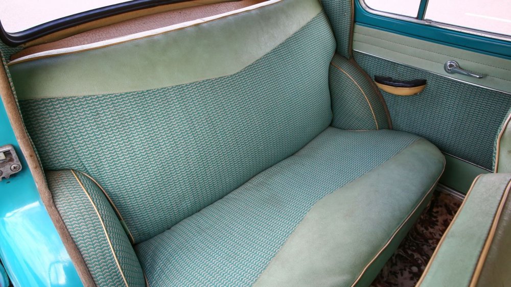 Сплошной диван спереди имел откидную спинку, раскладывающуюся на одном уровне с задним сиденьем с образованием большого спального места, мотивирующего к… нет, не к тому, о чем вы подумали (хотя…), а к дикому автомобильному туризму, поощрявшемуся в то время на государственном уровне (от развития сети кемпингов до выпуска фильмов наподобие «3+2»). Задний диван за счет небольшого багажника достаточно просторен для двоих, но для троих машина все же узковата.