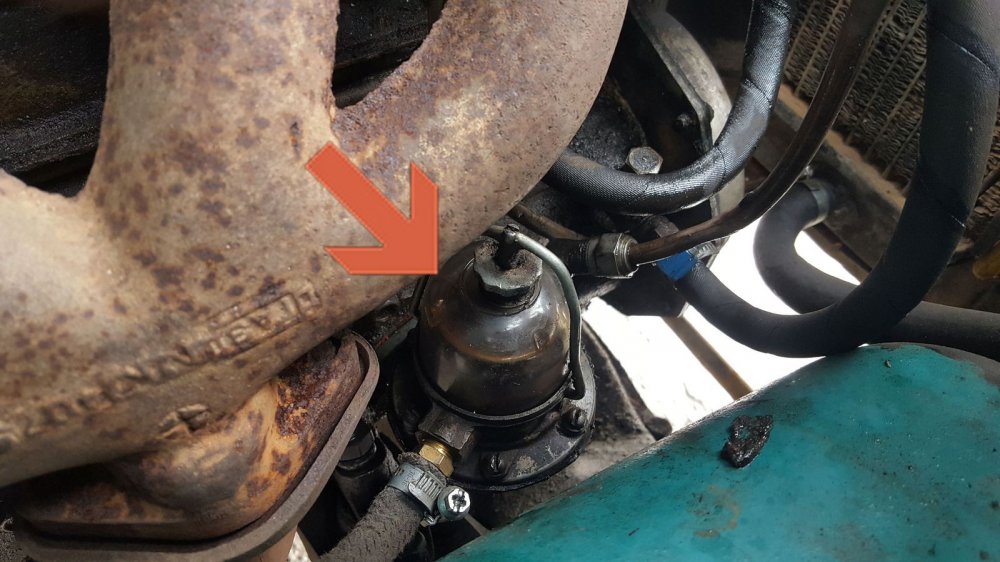 Деталь со стеклянным колпаком – бензонасос. Колпак – съемный, он является крышкой отстойника, через прозрачное стекло которой видны загрязнения и вообще наличие или отсутствие бензина в системе (кстати, положение стеклянного колпака – правильное, он не перевернут!)