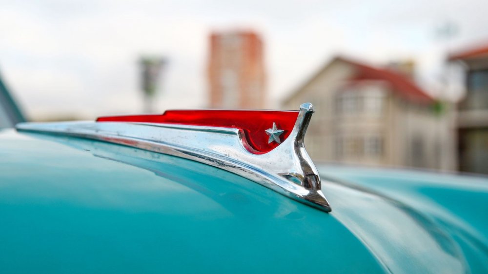 Хромированные молдинги, бамперы, колпаки, внешние петли багажника, рамки фонарей и прочие блестящие элементы придают облику автомобиля законченность и нарядность. Ну а стремительный и яркий флажок со звездой на капоте, на мой взгляд, мало в чем уступает оленю!