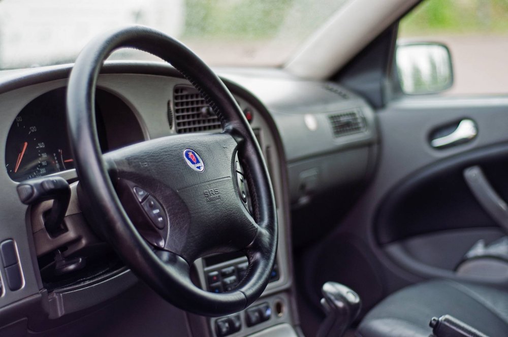 Да, сидя на водительском кресле (кстати, очень удобном), нельзя не заметить, что у Сааба и самолёта есть много общего. Дефлекторы климата, развёрнутая к водителю центральная панель с блоком управления климатом, музыкой и бортовым компьютером на одной панели, вынесенный отдельно на панели указатель давления наддува турбины и – самое оригинальное – замок зажигания, стоящий между водителем и передним пассажиром. Все эти детали как бы подчёркивают: «Я – самобытный швед, мне плевать на других, но я об этом не кричу. Я очень сдержан».