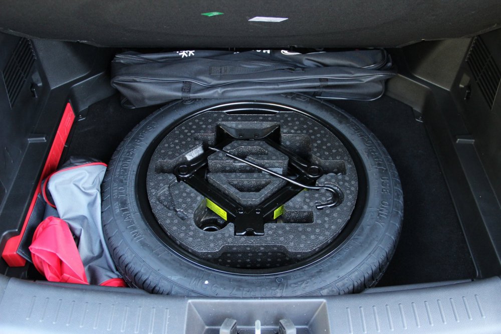 Багажник объёмом 340 л оформлен скромно, но аккуратно. При складывании спинок заднего сиденья между ними и полом багажника образуется небольшая ступенька, которая будет мешать погрузке длинномеров. Полка багажника жёсткая, убрать её внутри машины некуда. Вещевого органайзера вокруг докатки нет, но слава богу, что лежит она не на голом металле, а на пластиковой подложке.
