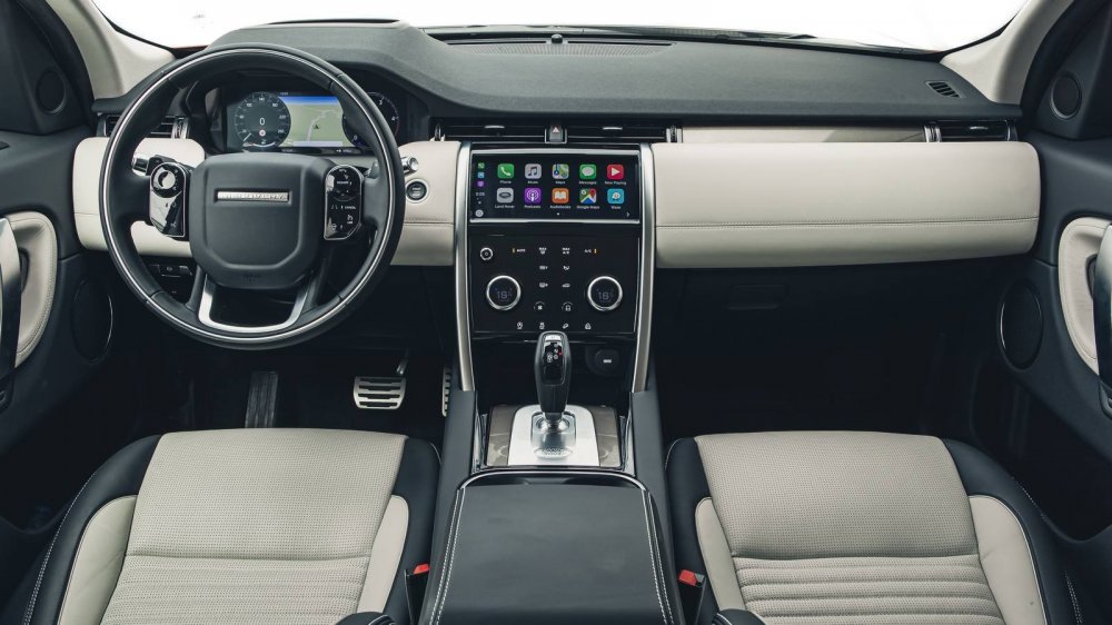 Как мы уже знаем, интерьер требовал обновления куда больше экстерьера: россыпь чёрных кнопок на чёрной панели выглядела старомодно. Однако и то, что получилось в результате рестайлинга, оценить можно неоднозначно: передняя панель сохранила доминирующие горизонтальные линии, но сменила физические клавиши на сенсорные. Руль и оформление пользовательского интерфейса здесь «общекорпоративные», вот только третьего экрана для управления климатической системой Discovery Sport не досталось – по статусу не положено. С другой стороны, ему положена беспроводная зарядка, которая недоступна ни за какие деньги для дорогого и авангардного Jaguar I-Pace, – в общем, чёткой логики здесь искать не стоит.