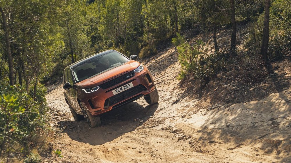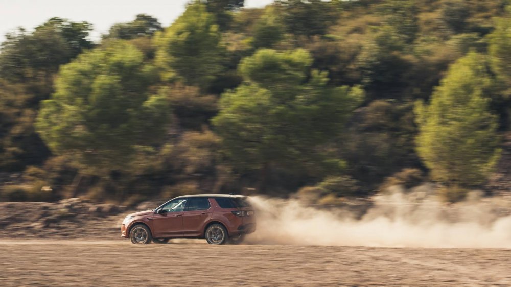 Поначалу выбор окрестностей Барселоны для места проведения тест-драйва показался непонятным: повсеместное ограничение в 50 км/ч и узкие серпантины, на которых Discovery Sport радует только в меру тяжёлым рулем с удачными настройками электроусилителя и чётким нулевым положением. Крены умеренные, асфальтовые повадки вполне типичные для некрупного кроссовера, разве что ширина почти в 2,2 метра с учётом зеркал намекает, что лучше ехать 120 км/ч по шоссе, чем разъезжаться с грузовиками на узких извилистых дорожках. На трассовых скоростях, кстати, не докучают ни шум ветра, ни звук мотора: несмотря на то что двойное остекление «Диско» не положено (его нет даже у более «статусного» Эвока), и без него шумоизоляция вполне достойная.