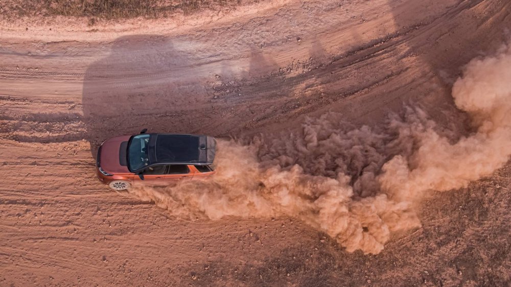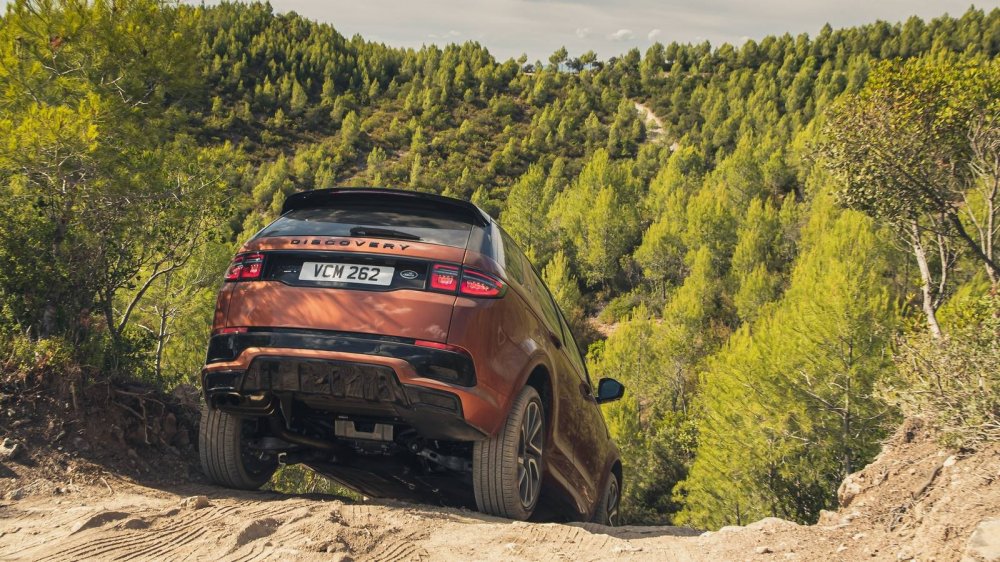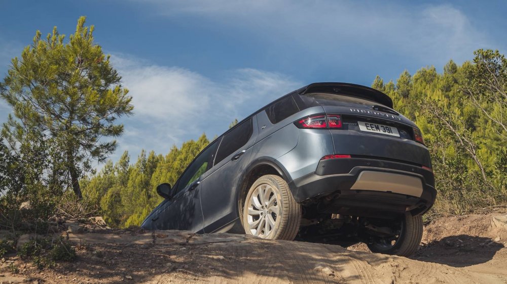 Discovery готов показать лёгкие внедорожные трюки даже тем, кто не будет съезжать с асфальта: к примеру, стоя на уклоне на тормозах, можно продавить педаль сильнее и увидеть на приборке надпись Hold, которая означает, что тормоз можно отпустить. В городе это просто удобная фишка, а на косогоре – возможность, например, высунуться из окна и не укатиться вниз. Хотя, строго говоря, у Discovery Sport столько камер кругового обзора, что высовываться не придётся: помимо камер в зеркалах и на носу, здесь есть целых две камеры сзади: нижняя служит для парковки и обзора, а верхняя, с водоотталкивающим покрытием, спрятана в плавнике антенны и работает как широкоугольное зеркало заднего вида: на само зеркало в салоне можно вывести картинку с этой камеры. Если же нужно отслеживать, что творится под колёсами, можно включить режим «прозрачного капота»: в этом случае передняя и боковые камеры запоминают картинку при движении и склеивают её в единый кадр, транслируя происходящее на экран в салоне.