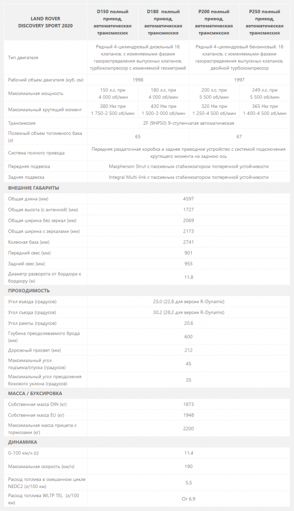 Подобно Эвоку, Discovery Sport потяжелел: если первый весит минимум 1 800 кг, то снаряжённая масса «Диско» по стандарту DIN – 1 979 кг для бензинового и 2 009 кг для дизельного. Одной из причин можно считать ограниченное применение алюминия. Из него, как и раньше, изготовлены внешние панели – крыша, капот и багажник, но старый кроссовер весил 1 863 кг, а сейчас, с новой гибридной схемой, которая заставляет возить с собой дополнительное оборудование и батарейку, снаряжённая масса стала больше. Разумеется, инженеры Land Rover объясняют «потолстение» ещё и выросшими возможностями по части пассивной безопасности: кузов стал жёстче на 13% и в целом лучше держит удар.