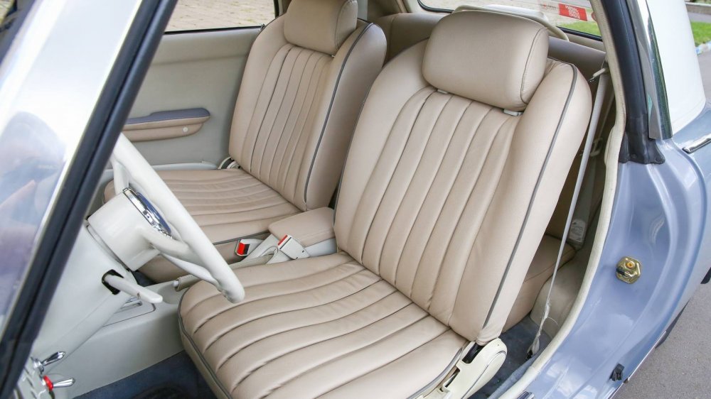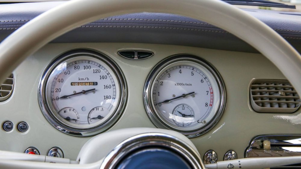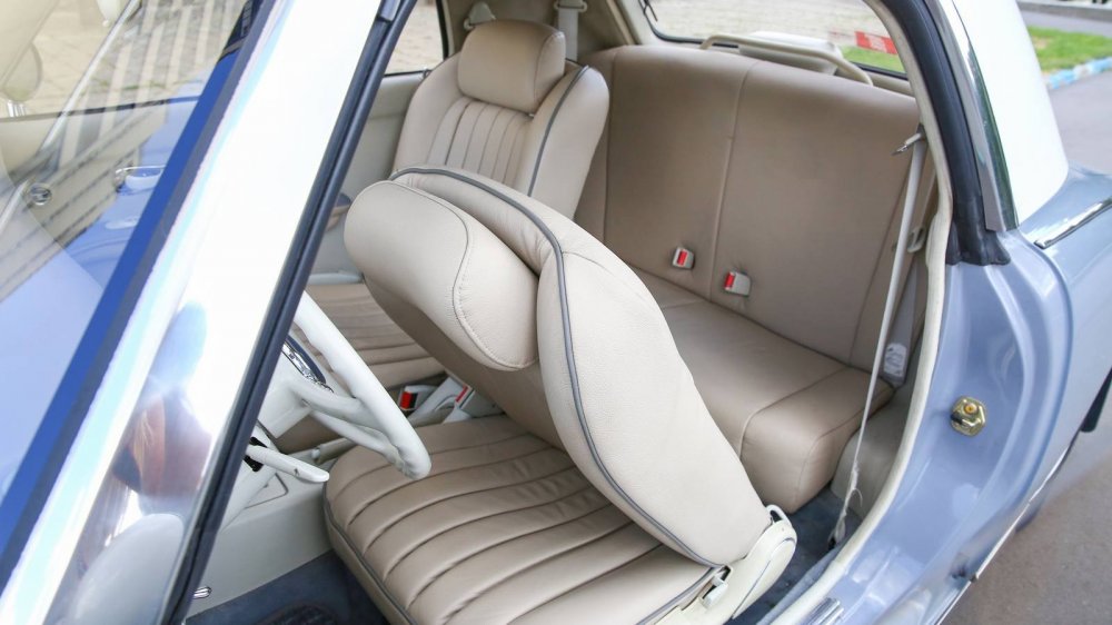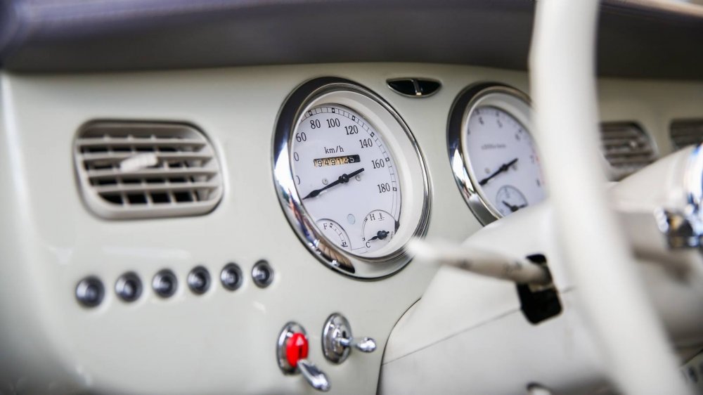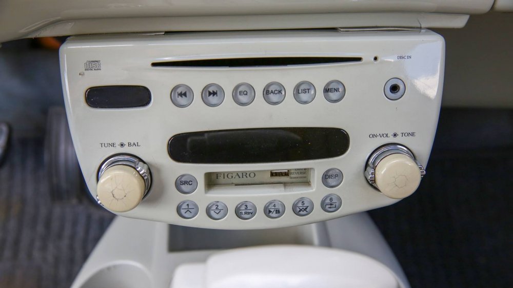 Торпедо автомобиля и его приборная панель выглядят едва ли не более шикарно, чем весь автомобиль снаружи! Потрясающие приборы с «часовыми» стрелками (среди которых есть и часы!), хромированные тумблеры, трёхспицевый тонкий «типа костяной» руль – внутри Фигаро чрезвычайно атмосферно. Плюс уюта добавляет пухлый светлый салон: нынешний владелец перетянул несколько поблёкшие с годами сиденья в натуральную кожу, полностью сохранив форму родных кресел и дивана.