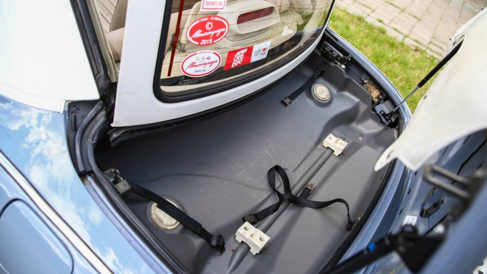 Впрочем, роль «мини-багажника» может выполнять отсек для хранения крыши, когда она поднята, – там всегда достаточно чисто и сухо за счёт резинового уплотнения по периметру отсека и пластикового пола-поддона. Но зачем поднятая крыша на столь весёлом и фановом «кабрике»? Разве ради езды «в коробке» покупают такую машину?!