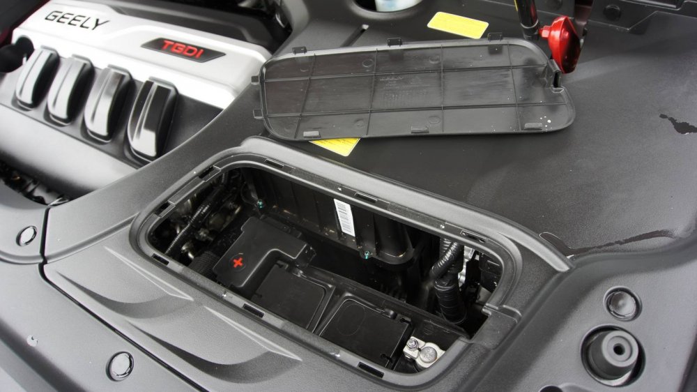 Практически всё подкапотное пространство эстетично закрыто декоративными пластиковыми пыльниками, из которых наружу торчат горловина для заливки масла, щуп, пробки бачка стеклоомывателя, тормозной жидкости и антифриза. Пробки ГУРа, разумеется, нет — усилитель руля электрический. Под крышкой пластикового лючка прячется аккумулятор, и вот это как раз решение так себе: добраться до клемм, чтобы “прикурить” машину в дороге, легко, а вот извлечь батарею, дабы унести её домой на зарядку, без разборки защитных “жабо” не получится. Так что зимой владельцам “Атласа” нужно быть повнимательнее с аккумулятором, не допуская разрядки, или же иметь при себе пусковой бустер.
