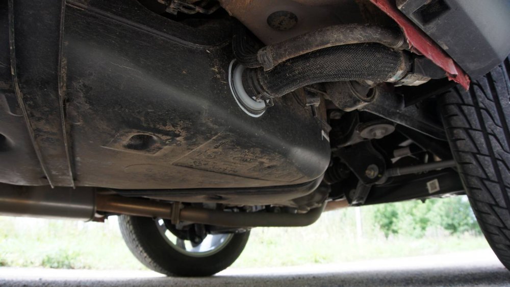 На преодоление сколь-либо серьёзного бездорожья “Атлас”, как и 90 % кроссоверов, не претендует; всё же дорожный просвет у машины “дачный”, а база длинновата. Да и пластиковый топливный бак расположен опасно — низковато и защиты не имеет. Мы, правда, машину особенно не жалели, но бак уцелел — слегка пострадал лишь нижний пластиковый пыльник двигателя, деталь недорогая и легко заменяемая.