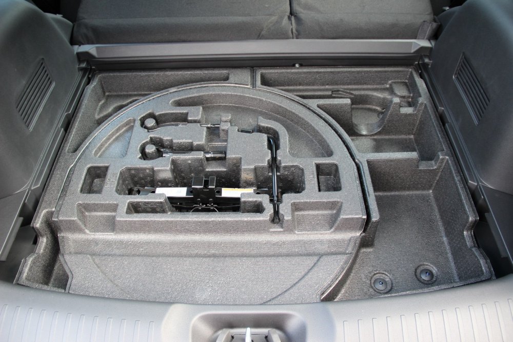 Объём багажника – 403 л (на литр больше, чем у Креты!), запаска-докатка спрятана под полом в аккуратном пенопластовом органайзере, куда можно поместить ещё много полезных в дороге мелочей. Багажная дверь поднимается на достаточную высоту, чтобы даже люди двухметрового роста не бились о неё головой. При складывании спинок заднего сиденья образуется ступенька, но она заботливо прикрыта пластиковой накладкой, и в целом на отделочных материалах в багажном отсеке производитель не сэкономил – выглядит прилично.