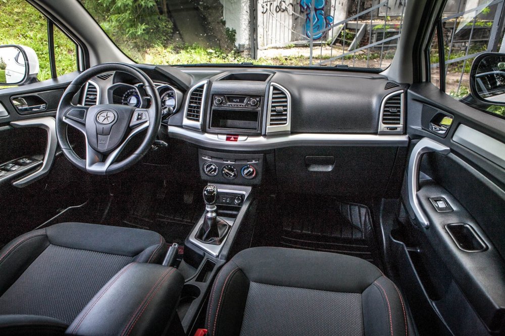 Остановившись после первого заезда, я осмотрел салон JAC S3. Типичный «китаец», находящийся в поисках жанра, что неудивительно, ведь машине в её нынешнем виде – без малого шесть лет, скоро и на покой пора! Но новая будет дороже прежней, и не факт, что по своим потребительским свойствам она будет отставать от российского изделия на французской платформе В0. А пока… Пока – дизайн интерьера из разряда «вчерашний день» и жёсткий пластик, который неизвестно как будет вести себя через три года. С другой стороны – хорошие по читаемости циферблаты, хотя и с бликующими то и дело стёклышками, обрамлёнными в причудливые серебристые семигранники неправильной формы. Да, почему-то не бросается в глаза кнопка аварийной остановки – ни в спокойном состоянии, хотя она выполнена красной на серебристой вставке центральной панели, ни в рабочем.