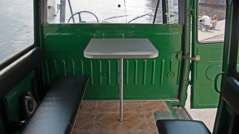 В “грузопассажирской” части кузова долго не просидишь вообще: на улице +30, и тёмный металлический фургон внутри напоминает печку. Наверное, на ходу здесь не изжариться не получится (есть форточки), но в стоящем под солнцем фургоне находиться очень неприятно. Давайте уже быстрее сядем за руль и начнём кататься с ветерком!