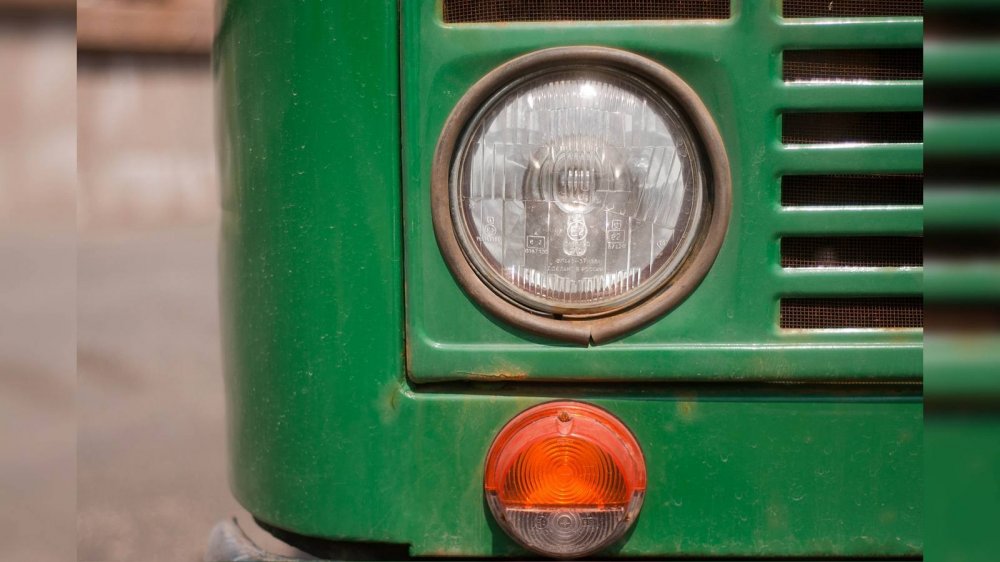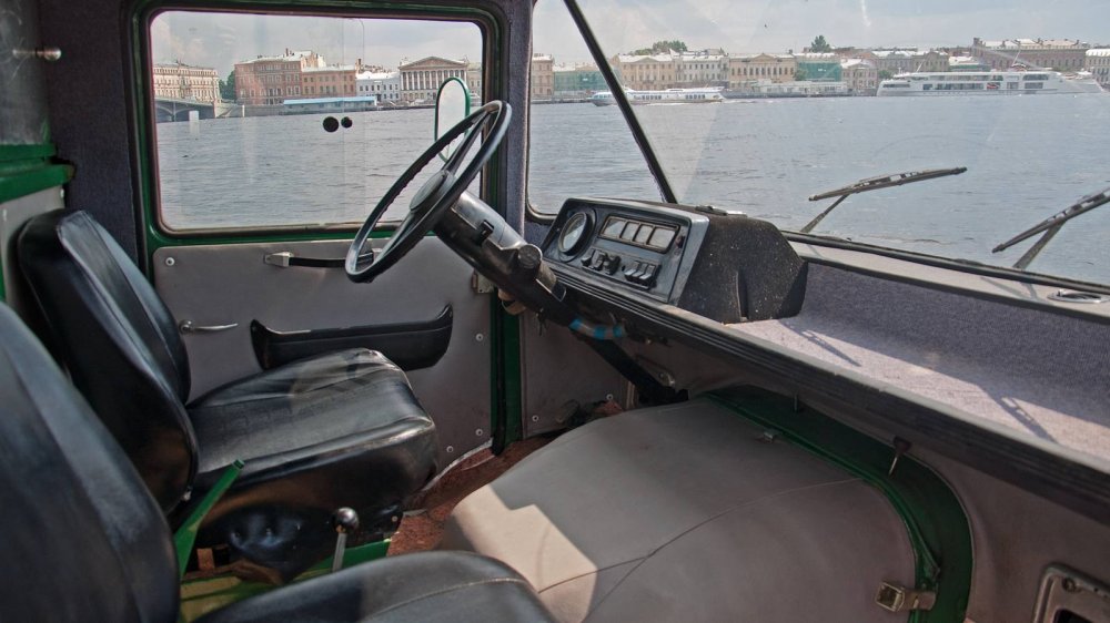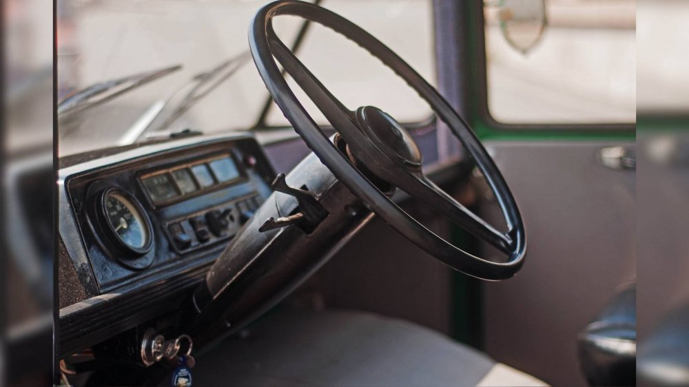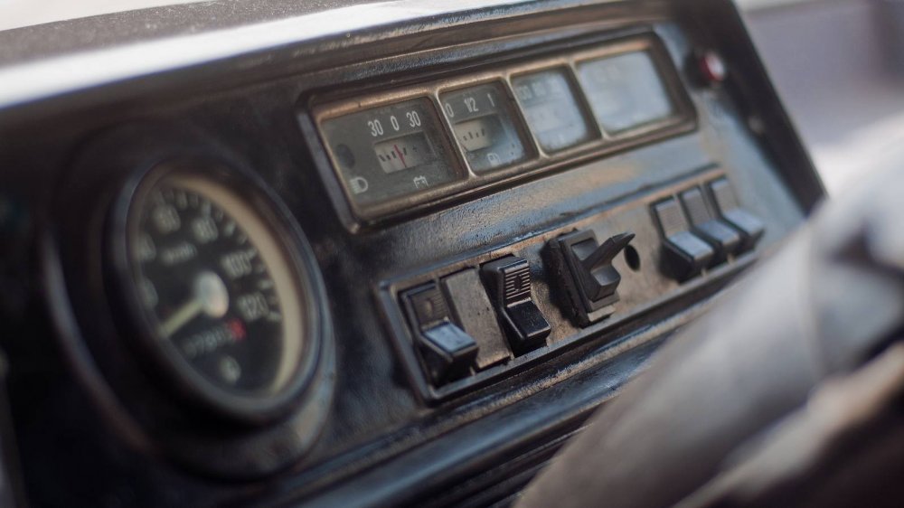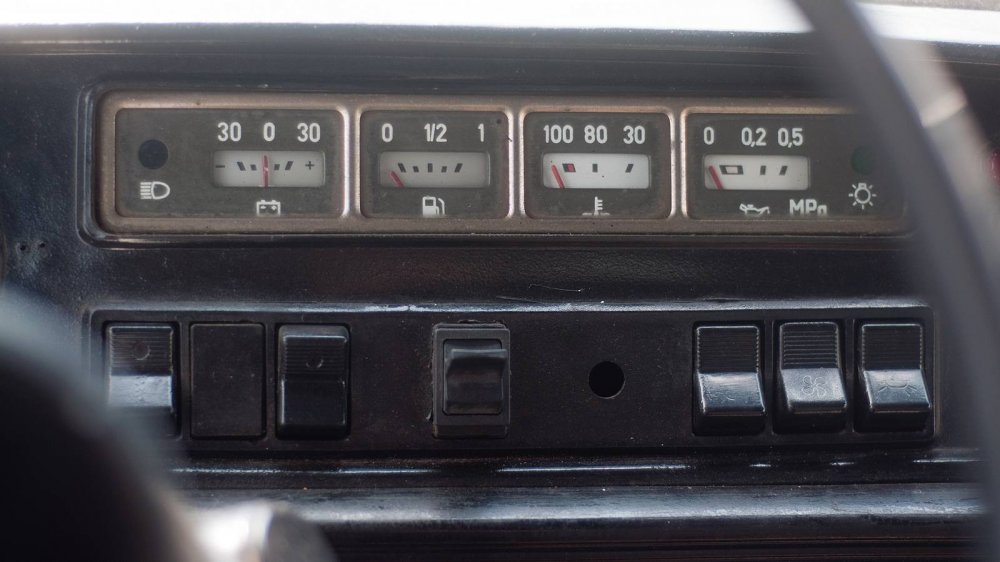 А вот приборная панель отрицательных эмоций не вызывает. Она вызывает умиление, ностальгию и желание курить “Стюардессу” или “Опал”. Приборы — родные до боли, похожие на всё то, что мы видели в папиных машинах (“папины” — это собирательный образ, если что: может, Москвич-412, ВАЗ-2101 или ГАЗ-24 был у дяди или до сих пор стоит в вашем личном гараже). Слева — круг спидометра, справа в линию выстроились амперметр, указатели уровня топлива, температуры охлаждающей жидкости и давления масла. А вот замок зажигания здесь расположен как у Порше — под левой рукой. Повернём ключик?