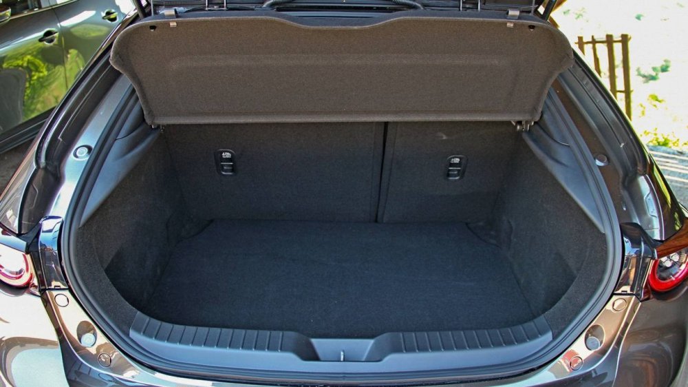 Багажник у хэтчбека небольшой, всего 295 л, а погрузочная высота великовата, что снова вызывает ассоциации с купе. Но правильная форма грузового отделения без выступов и возможность сложить спинки заднего сиденья вровень с полом всё же позволяют назвать новую «тройку» достаточно практичной – по крайней мере, если это машина для двоих, а не для типовой семьи из четырёх человек.