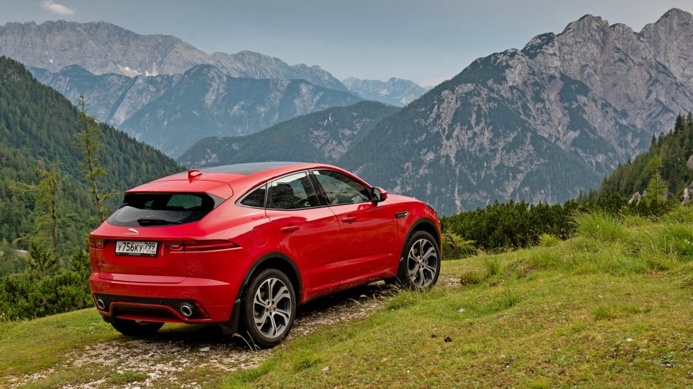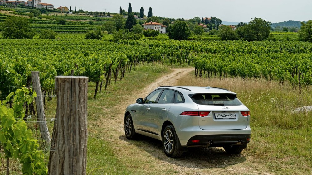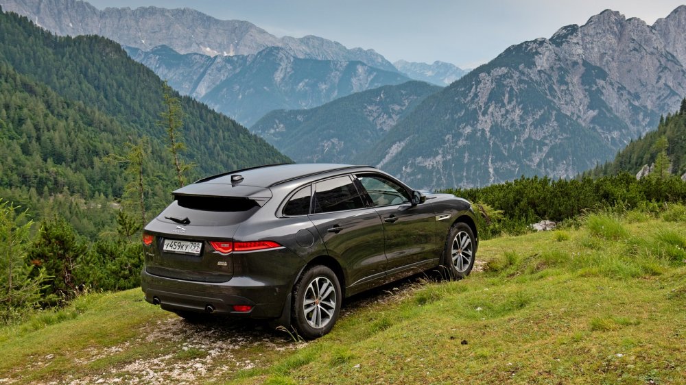 Переход от будущего к настоящему – а в нашем случае, от I-Pace к F-Pace, дается тяжелее, чем казалось. Кроссовер с двухлитровым 250-сильным бензиновым мотором встретил нас приветливым доступом к Wi-Fi, но напомнил о своей сущности неожиданной вибрацией, передающейся на холостых оборотах через каркас сиденья напрямую в спину. Несколько удивительно, что такое было отмечено даже не на дизельном, а на бензиновом автомобиле – но решение пришло само собой: переводим шайбу в Drive и отправляемся вверх по горным дорогам к перевалу Вршич, высочайшей точке нашего маршрута.