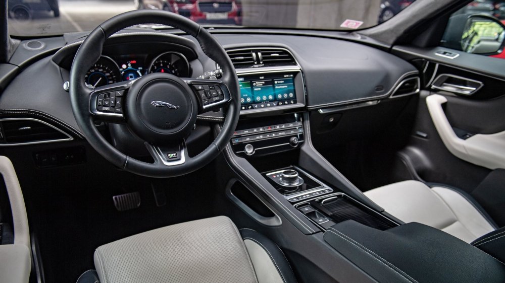 Вкупе с высокой посадкой и приличными габаритами (ширина здесь – уже под 2,2 метра, а длина – более 4,7) это делает старший кроссовер в «обычной» линейке не самым оптимальным вариантом для поколения узких горных серпантинов, где полосы движения порой сходятся в одну, шириной примерно в полторы машины. Стихия F-Pace – широкие магистрали, где раскрывается его «крейсерская» натура, подкрепляемая адаптивным круиз-контролем и ассистентом активного удержания в полосе. Поймав линии разметки, кроссовер действительно подруливает, иногда даже чересчур настойчиво помогая держаться точно по центру полосы. Но и брать на себя всю ответственность отказывается: если подруливать приходится долго, система начинает протяжно сигналить, настаивая на том, чтобы водитель взялся за руль и за ум.
