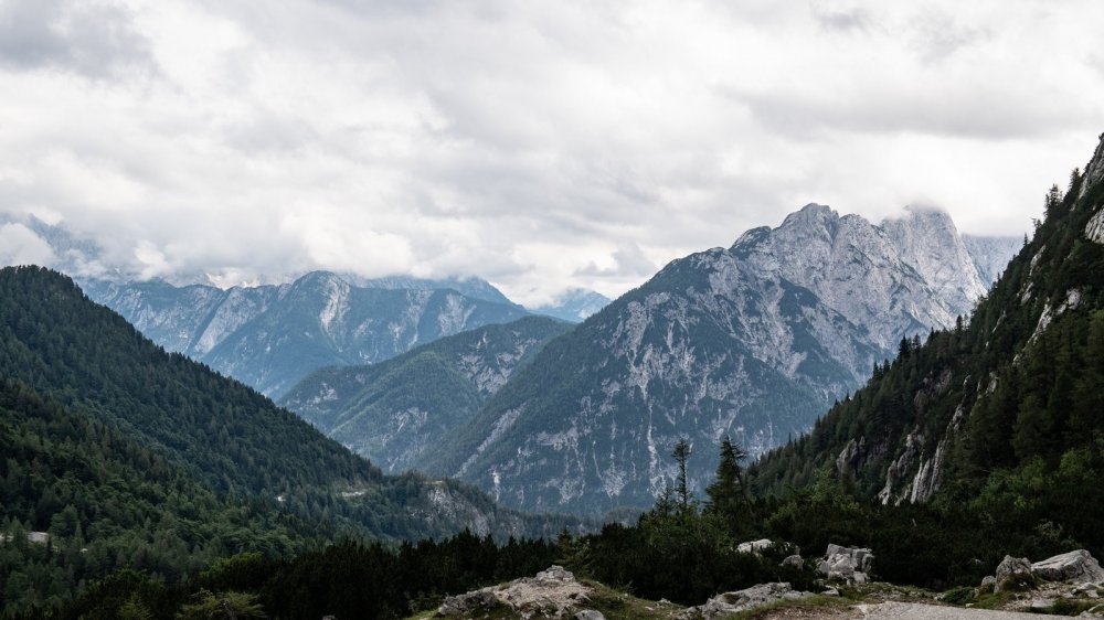 Высшая точка маршрута лежала на высоте 1 611 метров: это перевал Вршич, один из высочайших горных перевалов в этой части Альп. В отсутствие проблем с дыханием или недостатком тяги у машин напоминанием об отметке над уровнем моря были лишь облака, ватными комьями укутывающие вершины гор – до них, казалось, рукой подать. Ну а самым впечатляющим на спуске было даже не скалистое окружение, а сама дорога, выложенная в поворотах брусчаткой. Это – вечная память о русских военнопленных, которые в годы Первой мировой войны прокладывали путь через перевал. Австро-Венгрия, в состав которой в то время входила территория Словении, стремилась укрепить свои позиции на итальянском фронте, и задействовала для этого пленную рабочую силу. Несколько лавин, сошедших во время строительства и выкосивших русских солдат быстрее голода, болезней и тяжелого труда, погребли под собой сотни человек – и как дань памяти здесь теперь стоит Русская часовня, к которой ведет та самая дорога, выстланная брусчаткой.