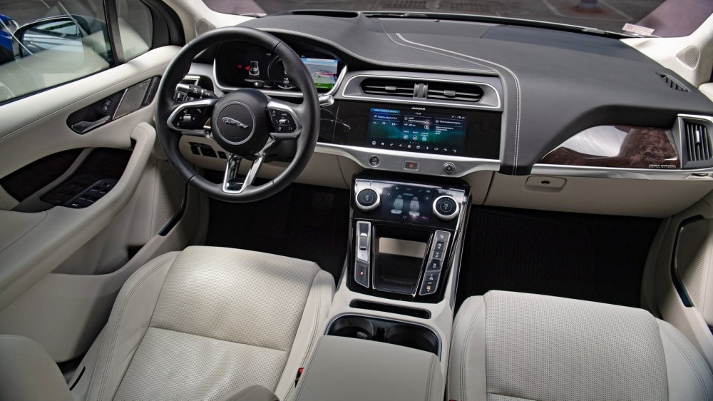 Опциональные сиденья-полуковши хороши: не только красивы, но также обеспечивают ненавязчивую боковую поддержку и не заставляют отказываться от той же вентиляции. Общая эргономика посадки, пожалуй, безупречна – разве что очень высоким владельцам придется раскошелиться на огромную панорамную крышу, которая не только удивляет размерами, но и поднимает потолок на несколько дополнительных сантиметров. Единственное, к чему придется привыкать – это кнопочное управление коробкой передач. В Jaguar явно приветствуют разнообразие – так, в младшем E-Pace на центральном тоннеле располагается «традиционный» вертикальный нефиксируемый селектор АКП, F-Pace предлагает водителю поворотную шайбу, а вот электрический I-Pace выделяется на их фоне кнопками.