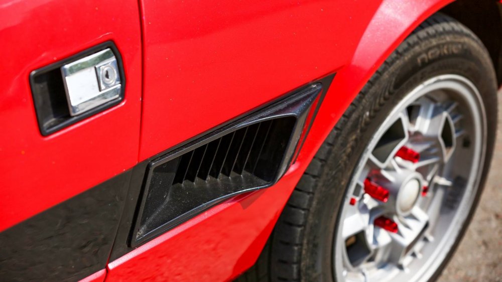 К примеру, бамперы. Если посмотреть на итальянские спортивные машины 70-х, то можно обнаружить, что бамперов как таковых спереди и сзади нет вообще, либо они представляют собой тоненькие накладочки-«усы». У X1/9 штатно было то же самое. Собственно, по причине отсутствия у воссоздаваемого из останков авто родных плоских накладок носа и кормы, прежний владелец установил на нее бамперы такого вида, как мы знаем их по современному автопрому – объемные пластиковые накладки, продолжающие линии кузова. Таких бамперов, как на этом X1/9, в природе не существовало, но мастер великолепно справился с задачей — именно так, как сделал бы это истинный инженер Bertone! То, что получилось – формально «колхоз», но фактически – не вполне! По сути, гаражный реставратор проделал за компанию-производителя ее работу в некой существующей в его собственной голове «параллельной вселенной», в которой X1/9 не ушел с конвейера в 1989 году, а продолжал выпускаться и "фейслифтоваться" в духе времени.