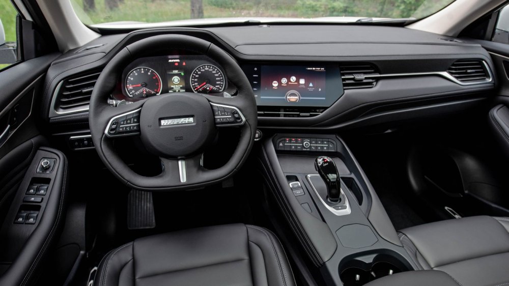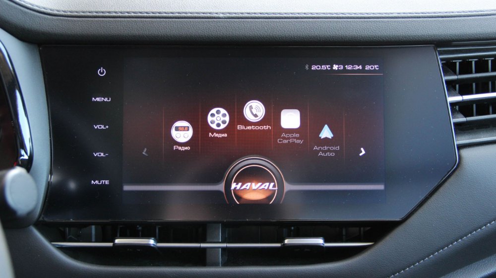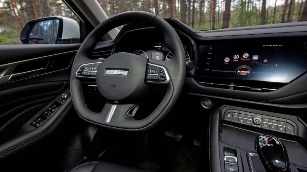 Сенсорный 9-дюймовый экран мультимедийной системы радует нарядной картинкой и высокой скоростью отклика, но он также мгновенно покрывается отпечатки пальцев. На машинах китайской сборки бродить по меню можно с помощью ротационно-нажимного джойстика и вообще не тыкать пальцем в экран, но российские машины такого джойстика лишены, вместо него установлена заглушка… Впрочем, представители «Хавейл Мотор Рус» уверяют, что на купеобразном кроссовере Haval F7х, который встанет на конвейер тульского завода осенью, джойстик вернётся.