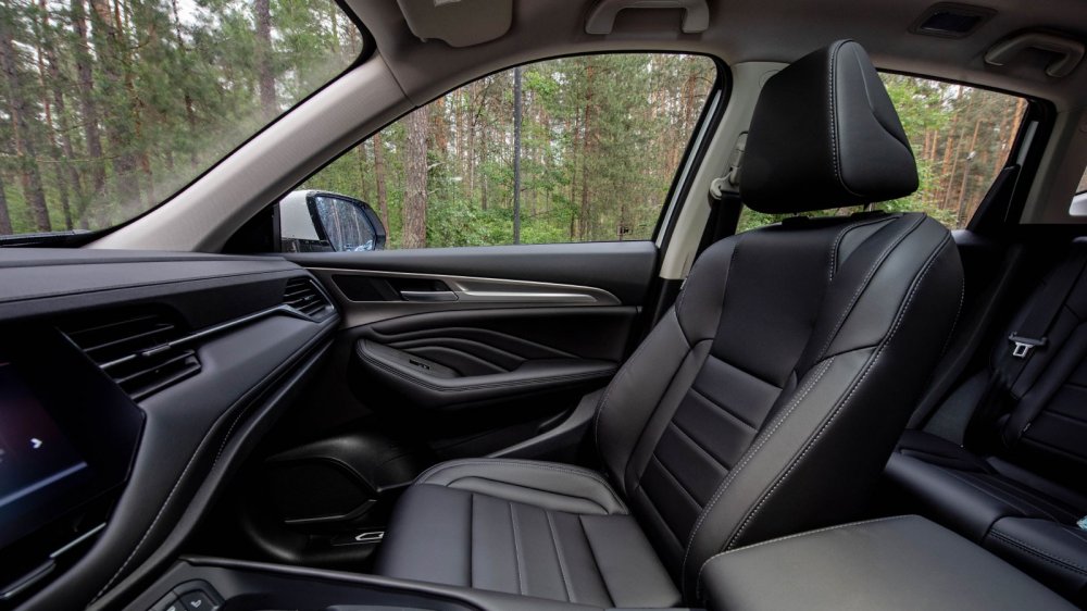 Между тем, электроусилитель рулевого управления от китайского филиала ZF на бездорожье отлично фильтрует все неровности: руль не вырывается из рук, колонка не трясётся, микровибрации не достают – их практически нет. На асфальте, однако, руль кажется малоинформативным, особенно в околонулевой зоне, но к точности реакций в поворотах претензий нет – подруливать на дуге не нужно.
