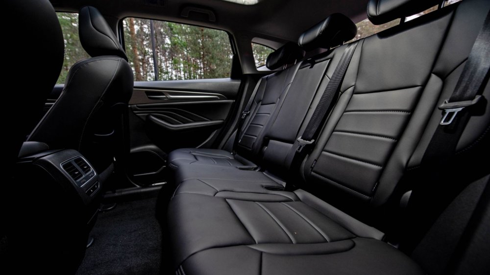 Один из самых жирных плюсов Хавейла F7 – очень просторное заднее сиденье: запас для ног – как в седанах бизнес-класса! Даже сидя за коллегой-водителем ростом 186 см, я имел перед коленями добрые 10 см свободного пространства. Вздремнуть в дороге – никаких проблем: угол наклона спинок заднего дивана регулируется в большом диапазоне. Единственный минус – короткие подголовники: за такую геометрию в тестах Euro NCAP китайский кроссовер точно получит «неуд», при этом металлические штыри крепления у подголовников достаточно длинные – просто китайцы поленились сделать на них побольше фиксирующих насечек. Уже пообещали исправить!