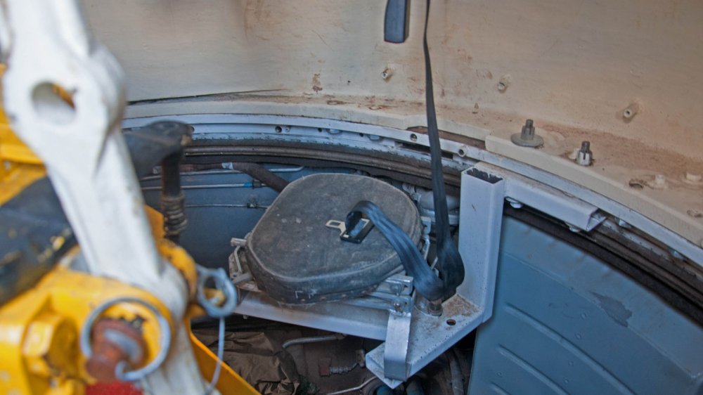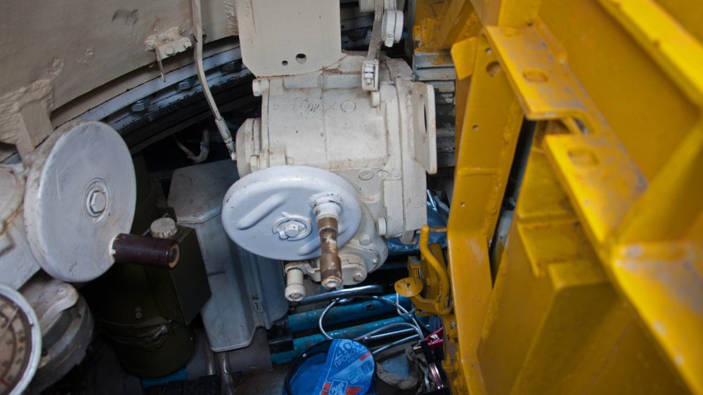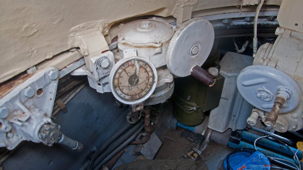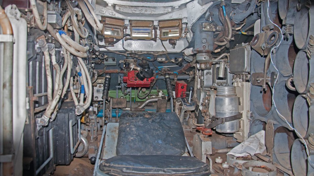 Сиденье водителя выглядит неказисто. Но мы же в танке, тут мелочей не бывает… Поэтому в сиденье есть вставки, которые прикрывают мехвода снизу от возможного гамма-излучения при передвижении по заражённому участку. Кстати, такую же функцию несут в себе и топливные баки, установленные внутри корпуса.