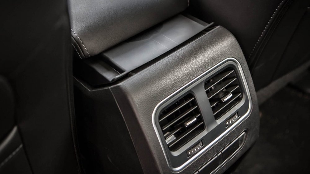 Место водителя поначалу показалось тестовым – на это играют высоко поднятый тоннель и сильно развёрнутый в сторону водителя экран мультимедийной системы, размещённый аккурат посредине центральной панели. Спицы мультифункционального руля производят впечатления перегруженных и, скорее всего, потребуют от водителя длительного привыкания. Оба дисплея, в том числе, и электронный щиток приборов, показались тусклыми, но логика управления данными на обоих – на первый взгляд, прозрачная и интуитивная. Отметим, что ротационно-нажимной селектор управления мультимедийкой, даёт приятное реактивное усилие и выполнен по-европейски, без экономии материала и исполнительного механизма. Однако, водителю ростом до 180 см скорее всего управлять им будет не слишком удобно, поскольку придётся сильнее обычного отводить локоть назад.