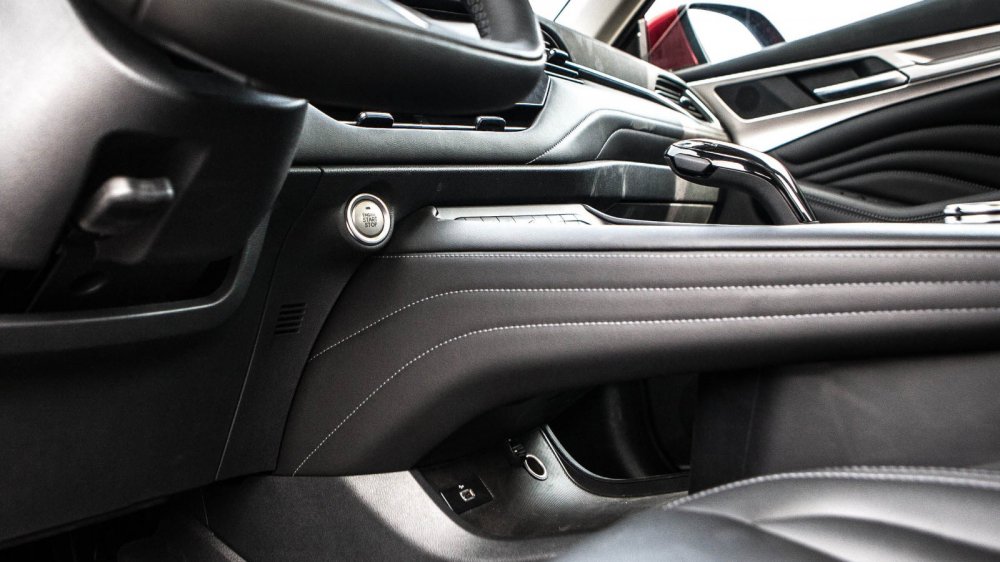 Ещё отметим два «оригинальных» решения: кнопка запуска двигателя расположена очень низко – на центральной панели, рядом с правой коленкой водителя, а прикуриватель вместе с дополнительным USB-входом – и вовсе в нише под тоннелем (см. фотографию).