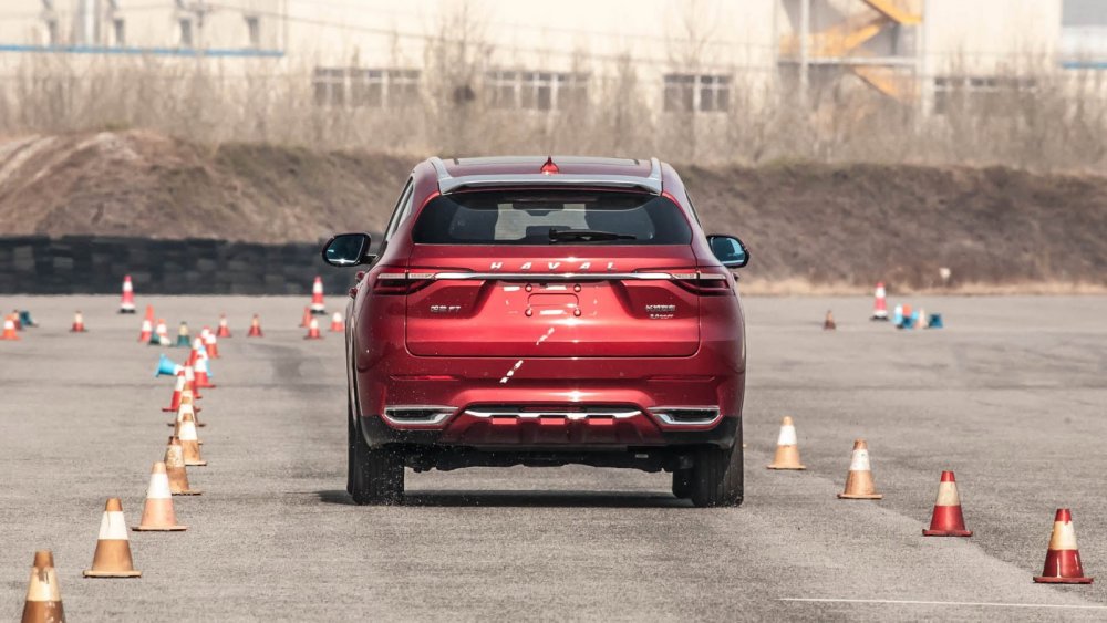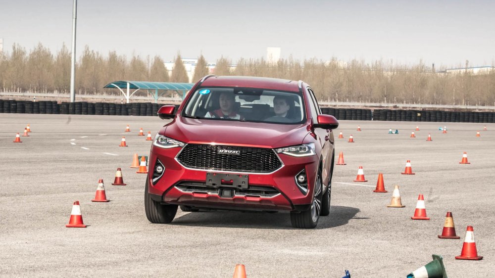 Следующие полтора часа я провёл за рулём, однако, в несколько ограниченном режиме. Организаторы предложили нам набор совершенно одинаковых и незамысловатых трасс. Разгон по прямой метров 150, затем S-образный зигзаг с последующим разворотом на 180 градусов, ещё метров 100, снова «эска» и – на новый круг. Под капотом нашего тестового образца оказался 2,0-литровый мотор с непосредственным впрыском и турбиной, спаренный с 7-ступенчатым «автоматом» с двумя мокрыми сцеплениями. На первых же притирочных «заходах» я отметил, что если водитель в режиме D полностью выжимает газ, то передачи переключаются вверх примерно при 5100-5200 об/мин, и в дальнейшем это остаётся неизменным, вне зависимости от того, активирует водитель ручной режим или нет. Кнопки спортивного режима мы не обнаружили, хотя в родственном автомобиле VV7 премиальной марки Wey, принадлежащей той же Great Wall, она есть.