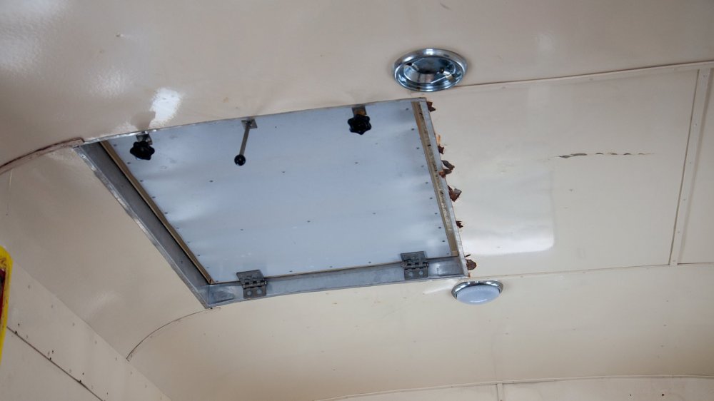 Теперь скажем пару слов об истории нашей машины. Никто не знает, как и когда она появилась в СССР. Но точно можно сказать, что это — передвижная флюорографическая установка. Во-первых, именно в таком виде Праги чаще всего попадали сюда из братской Чехословакии, а во-вторых, об этом говорит кунг. Правда, предыдущий владелец был знатным сибаритом: вся медицинская начинка была выкинута, а внутри стояли похабного вида диванчики. Со временем здоровье, видимо, стало его подводить, и диванчики были завалены за ненадобностью всяким хламом. Не хотел бы я видеть, кто и как тут развлекался, но люк на крыше — это лакшери. Как и “вёсла” стеклоподъёмников — такое в кунге вообще редко встретишь.