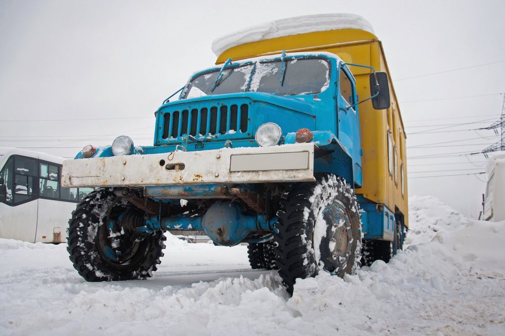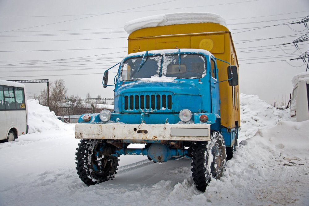 Началась поездка с небольшого квеста “выйди на дорогу”. Машина стояла засыпанная снегом, а прямо перед мордой навалили целый сугроб. Владелец машины, который пока не успел получить категорию С, просто открыл мне дверь и сказал "валяй сам!". Хм… Работает ли передний мост, он не знает. Попробуем выйти так, просто на “понижайке”.