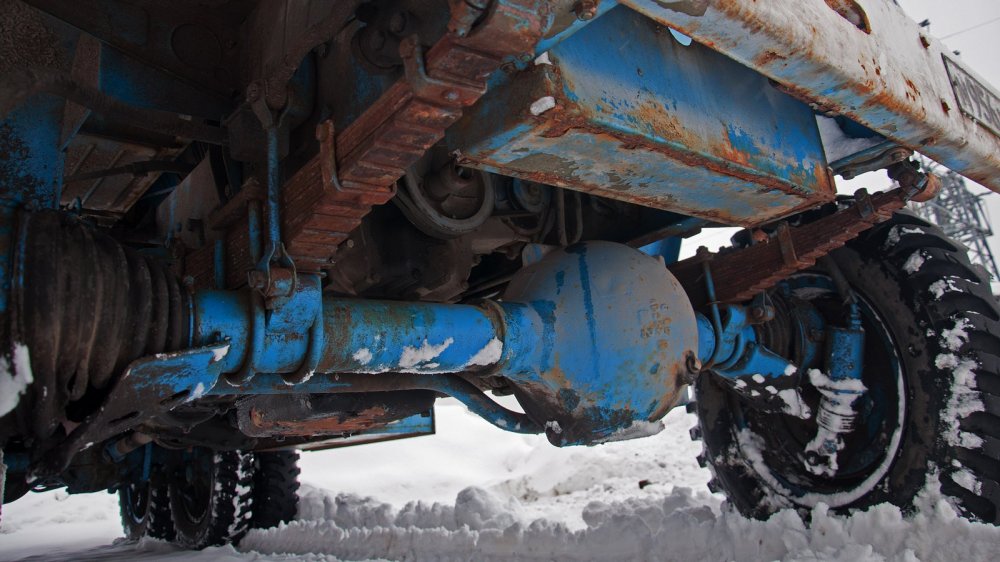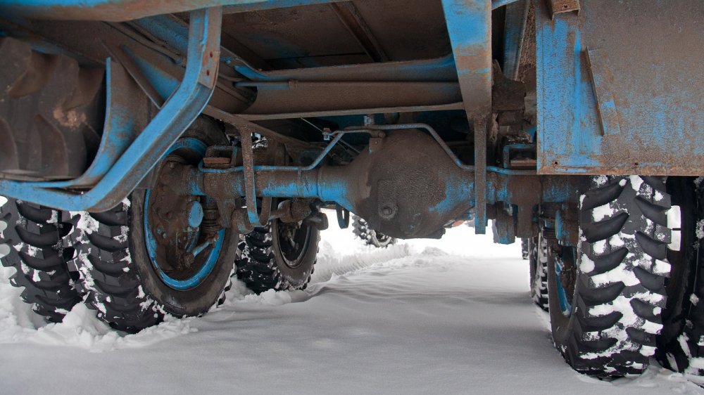 “Вот, наверное, у него рама! Такие-то грузы таскать...” — подумает кто-то. Ну как сказать… Рама у V3S действительно надёжная, но вместе с тем она легко изгибается. И это не просчёт конструкторов, а их расчёт: рама из двух лонжеронов, соединённых семью поперечинами, сравнительно слабо сопротивляется кручению. А это, как вы уже догадались, увеличивает ходы подвесок, что для вездехода очень важно.